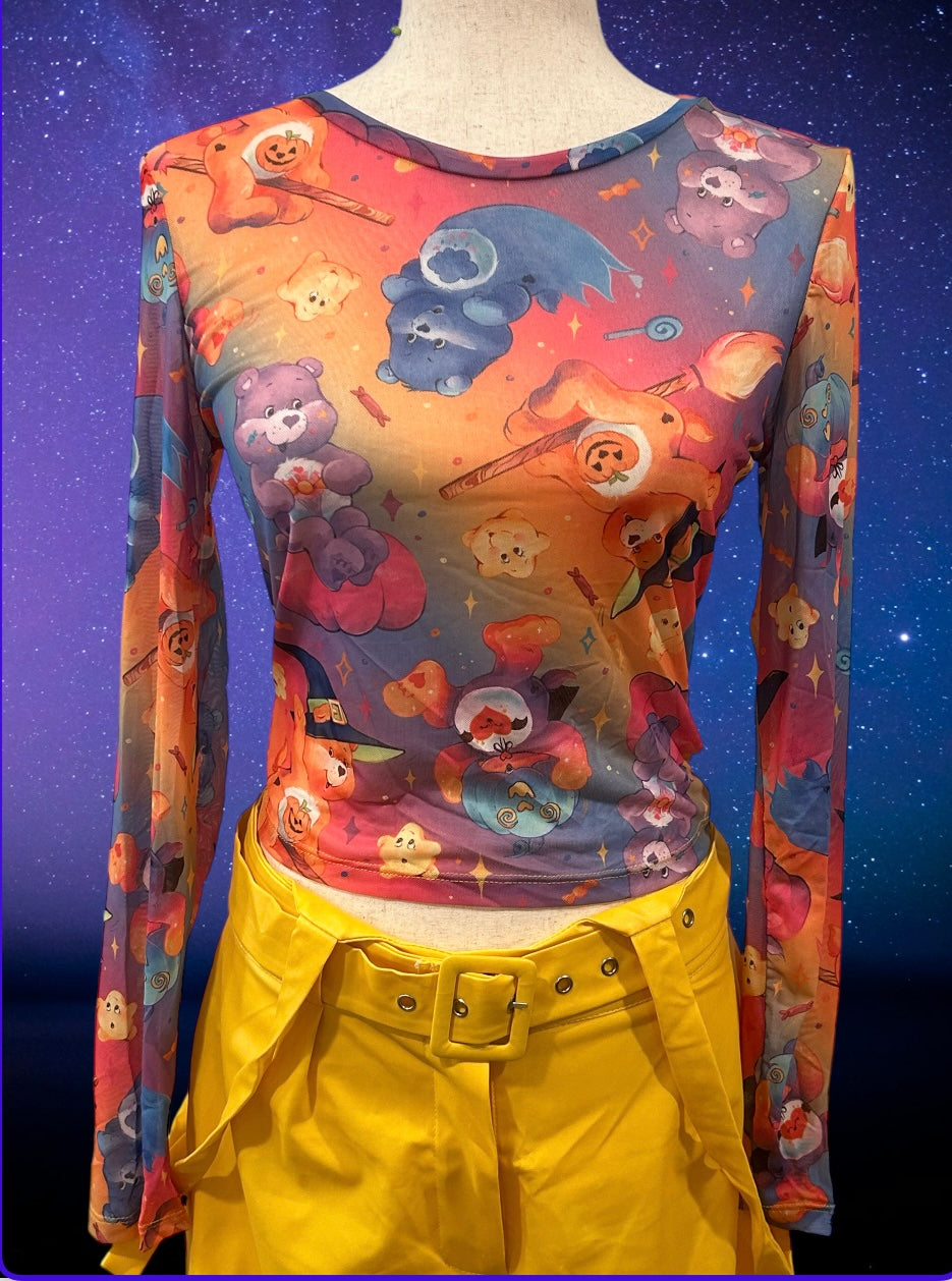 Wear this witch care bear top throughout the whole year. Pair it with our cute yellow overalls to complete the look!