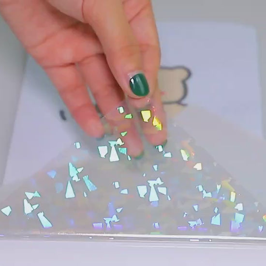These holographic sheets can be used just about anywhere. Over children's binders, books, cell phones. Just un peel and stick on any surface.