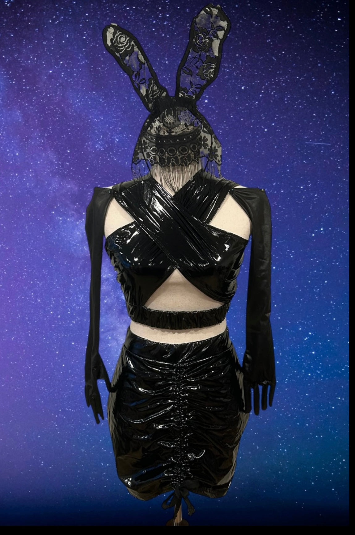 This sexy latex outfit can be worn out, in the bedroom or as this bunny costume.