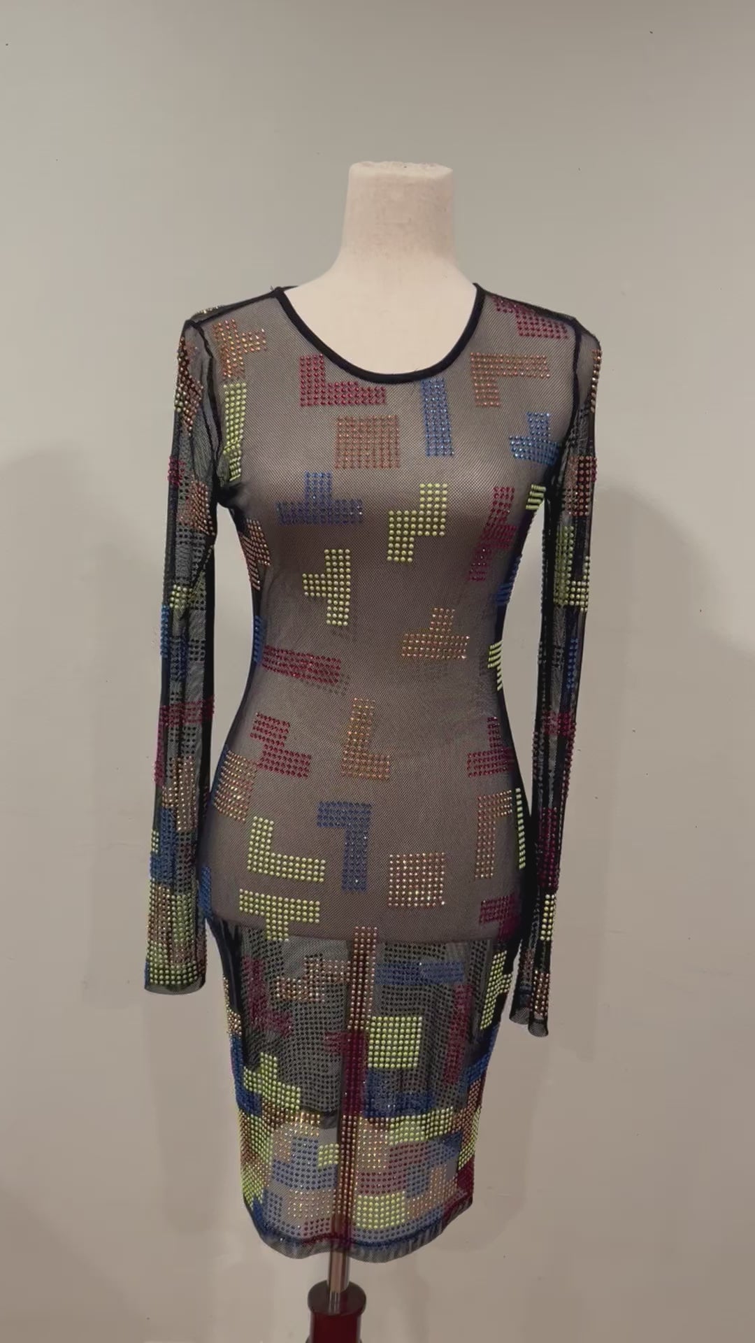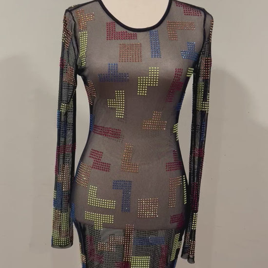Quality rhinestones were added to this dress. Wear this tetris dress for your Halloween costume to stand out for originality!