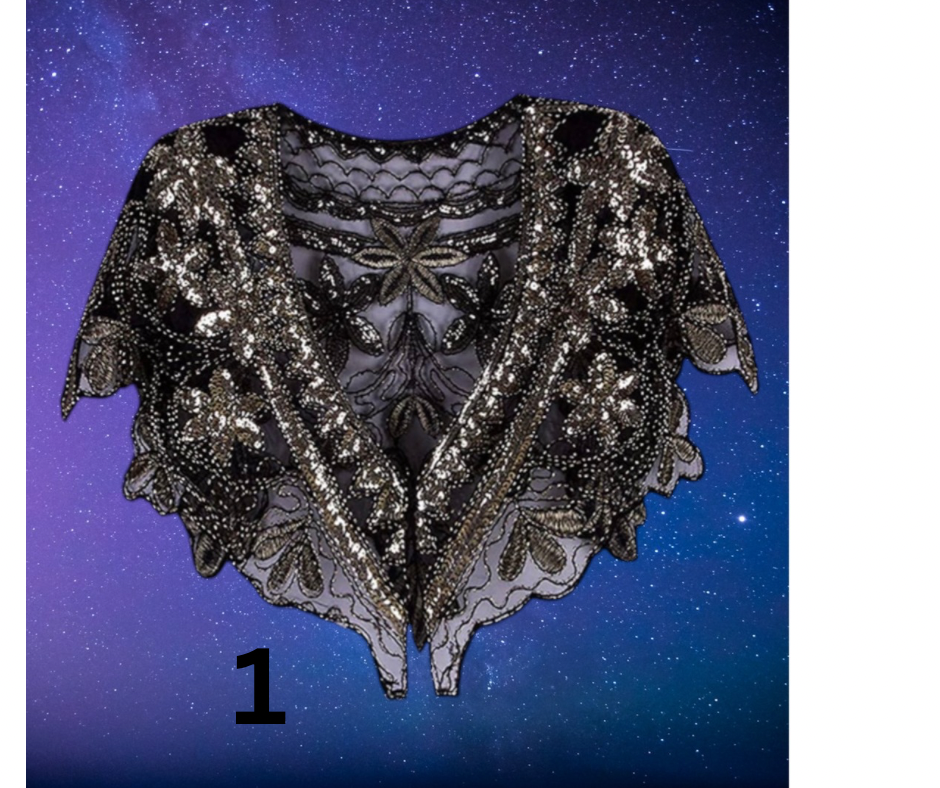 These sequin coverups are perfect for any style dress. Just slip it on and make any outfit more formal. There is a clasp in the front to close the top or keep it open for a different look.